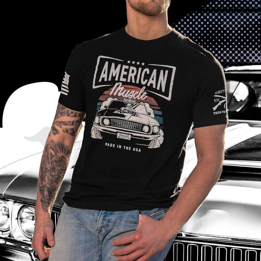 You Can’t Beat American Muscle. This American Muscle tee is a tribute to the classic American muscle. Grunt Style’s graphic tees are made with high-quality cotton to provide all-day comfort throughout all your racing adventures. Show your respect for the power and performance of these classic muscle cars with this t-shirt. The perfect way to show your appreciation for the classic automotive style.