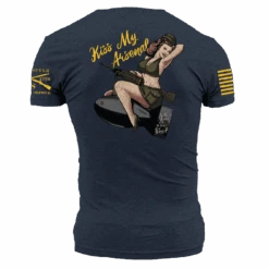 With guns blazing and weapons blazing, this WWll-inspired graphic tee is ready to drop bombs that’ll kiss any sucker goodbye. You better be prepared to face our wrath if you don’t stand for freedom. Our arsenal is red hot and ready. Order this Kiss My Arsenal T-shirt today and drop the bombs.