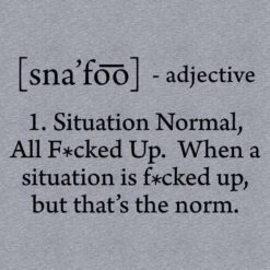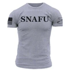 Our SNAFU – Heather Gray Tees are crafted with the following details: