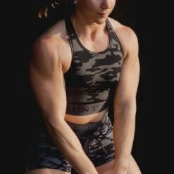 Stealth Mode is officially activated. These stealth sports bras will have you looking dangerous in black! With the Women’s Racerback Sports Bra – Black Camo, you’ll be ready to instantly go from relaxing to active mode! Order your hybrid sports bra today, along with the