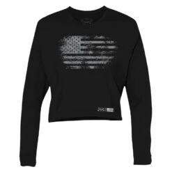 Get an irresistibly stylish look when you throw this exclusive Grunt Style crop top onto your next outfit! We have taken our design of the Vintage American Flag and put it on a cropped long sleeved tee, perfect to throw on and complete your outfit. Express your American pride in style with this Women’s Vintage American Flag Cropped Long Sleeve- Black. Order your comfort fitting long sleeve top today!