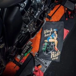 This graphic tee features a pin-up model front and center on the chest, the American flag on the right sleeve, and Grunt Style proudly displayed on the left sleeve.